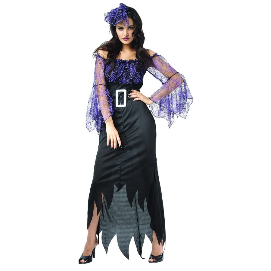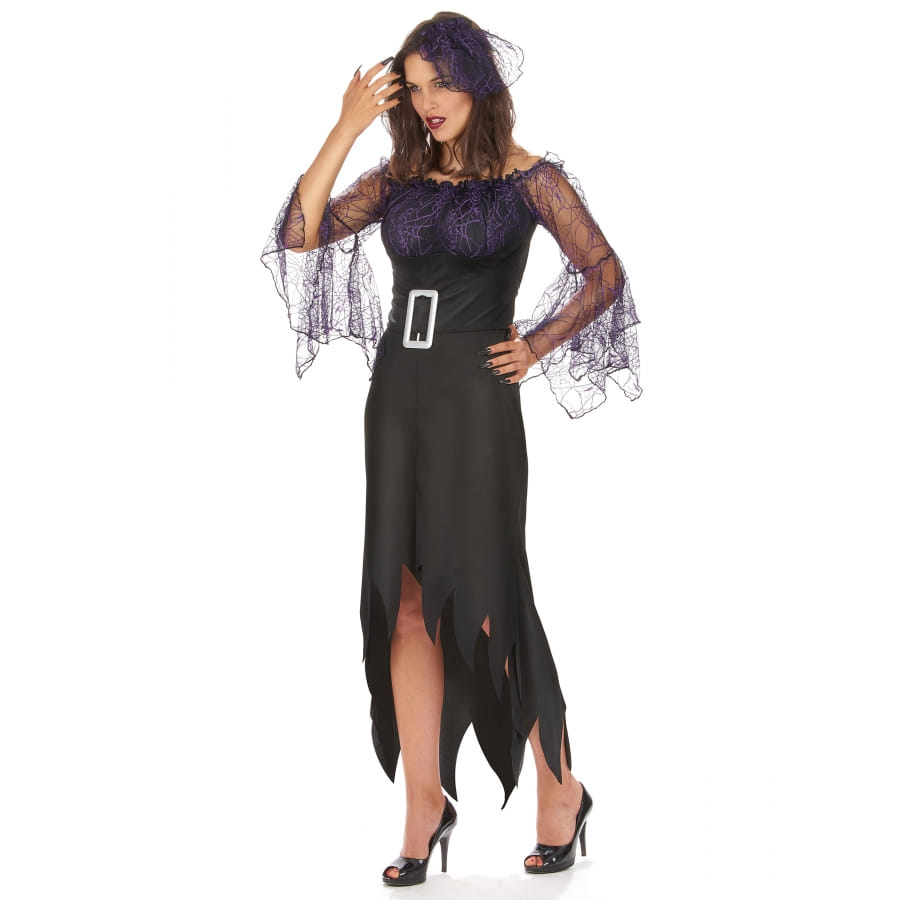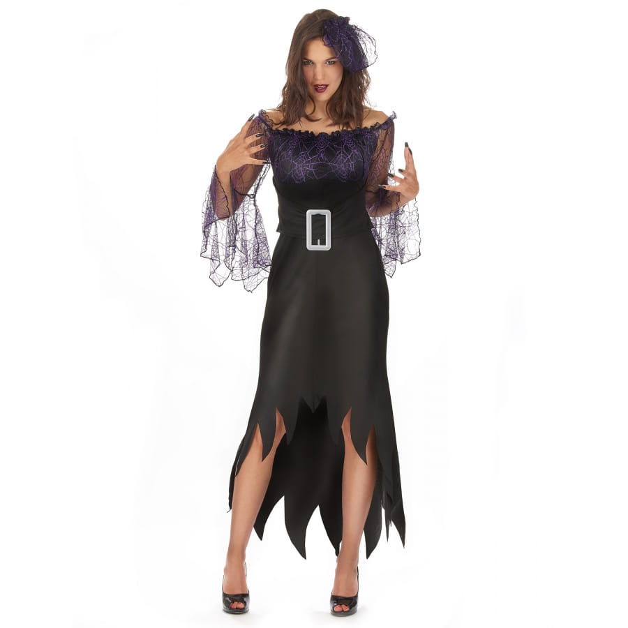 La robe noire avec voilage toile d'araignée violette vous est proposée pour vous transformer pendant halloween.