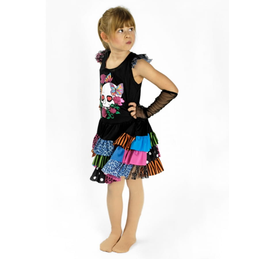 Pour cette fois-ci, laissez votre fillette porter cette robe noire colorée punk pour enfant.