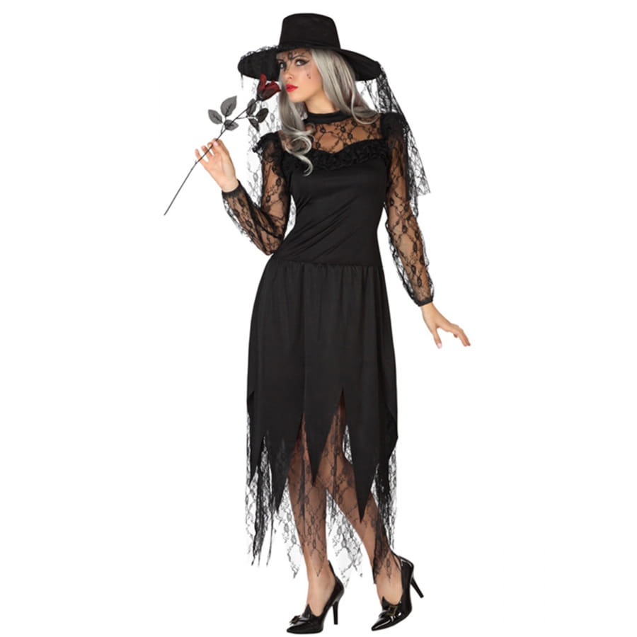 De la classe, du mystère, de la magie et un brin de charme sont les principaux atouts de notre robe noire de sorcière avec dentelle et chapeau.