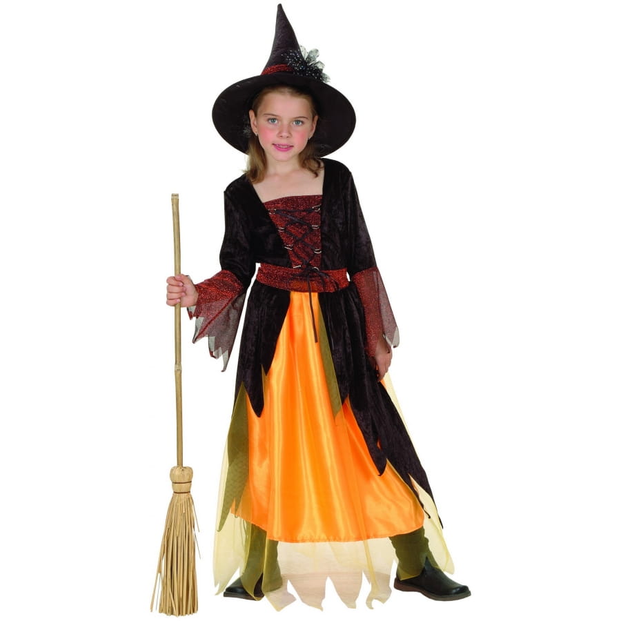 Pour compléter le tout, le costume est accompagné d'un chapeau pointu de sorcière, décoré d'un bandeau rouge.