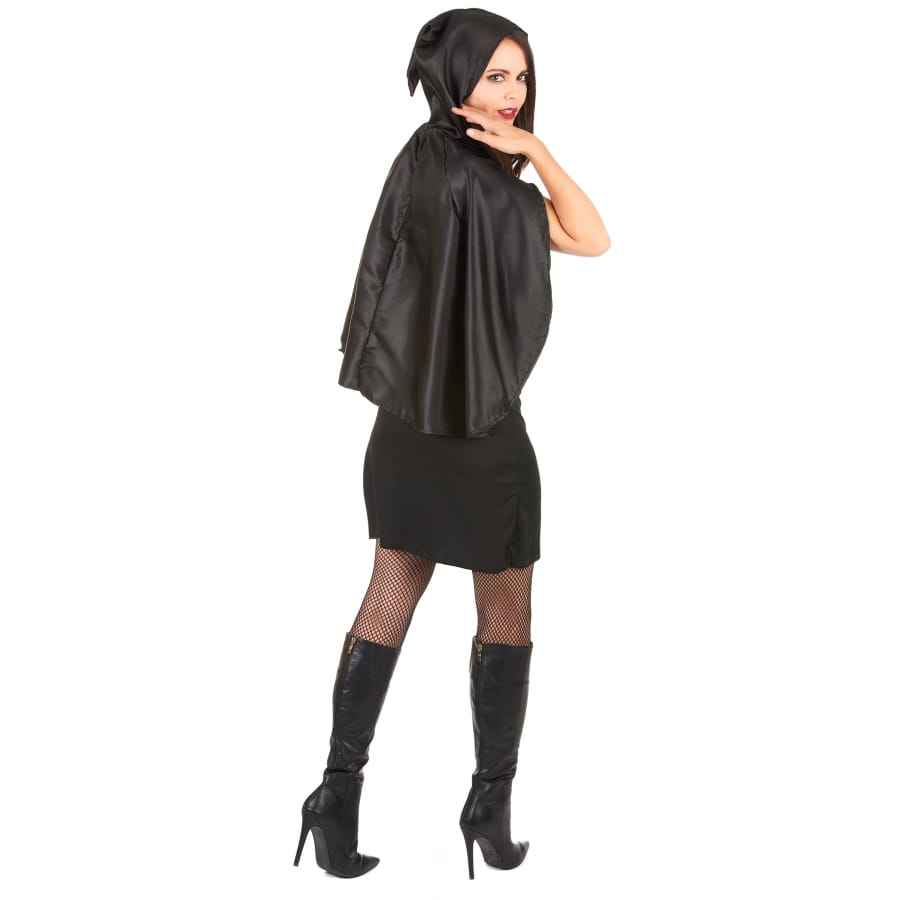 Pour le parfaire, une cape à capuche pointue noire, fixé par scratch a été ajouté au costume.