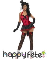 Un serre-tête bleu et noir orné d'un plume vient compléter cette ensemble parfait pour une danseuse de cabaret.