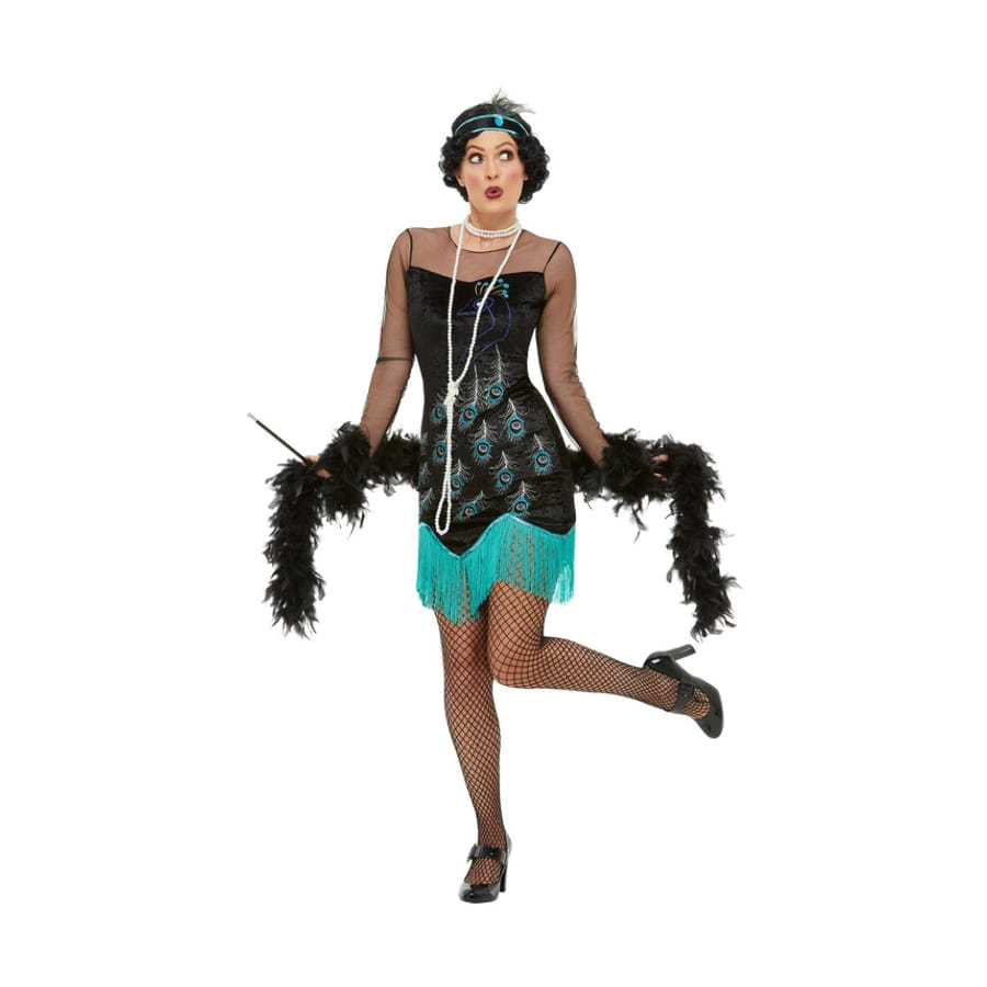 Faites valoir la mode Charleston lors d'une soirée de cabaret avec la robe Paon années 20 avec franges bleues.