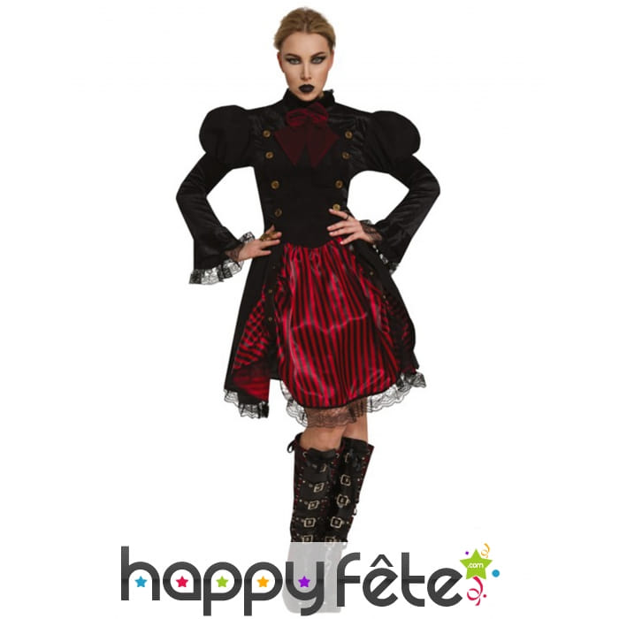 Mêlez Halloween et fantastique pour une tenue toute en originalité, avec la robe Steampunk noire et rouge pour femme.