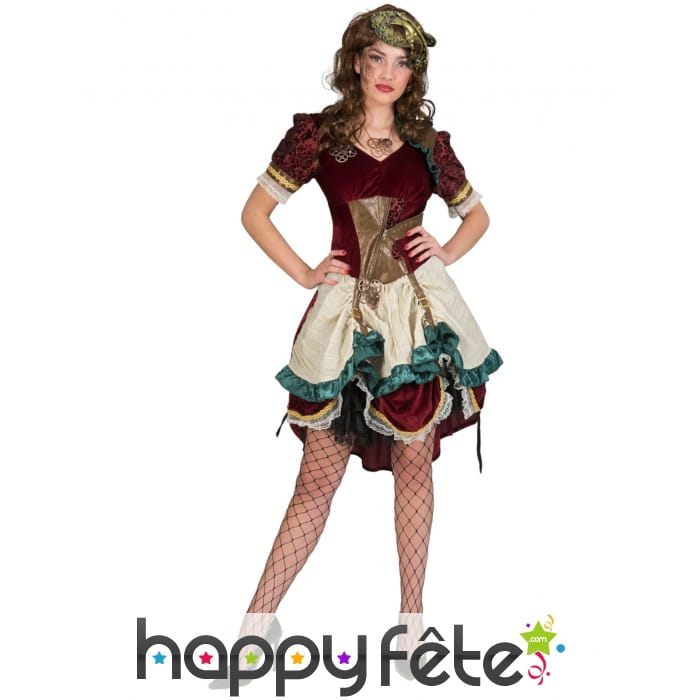 Optez pour un mélange futuriste et glamour avec la robe Steampunk pour femme, effet velours.