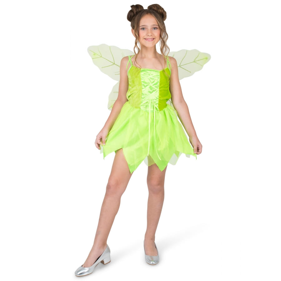 La robe verte de petite fée avec ailes contient une robe et des ailes.