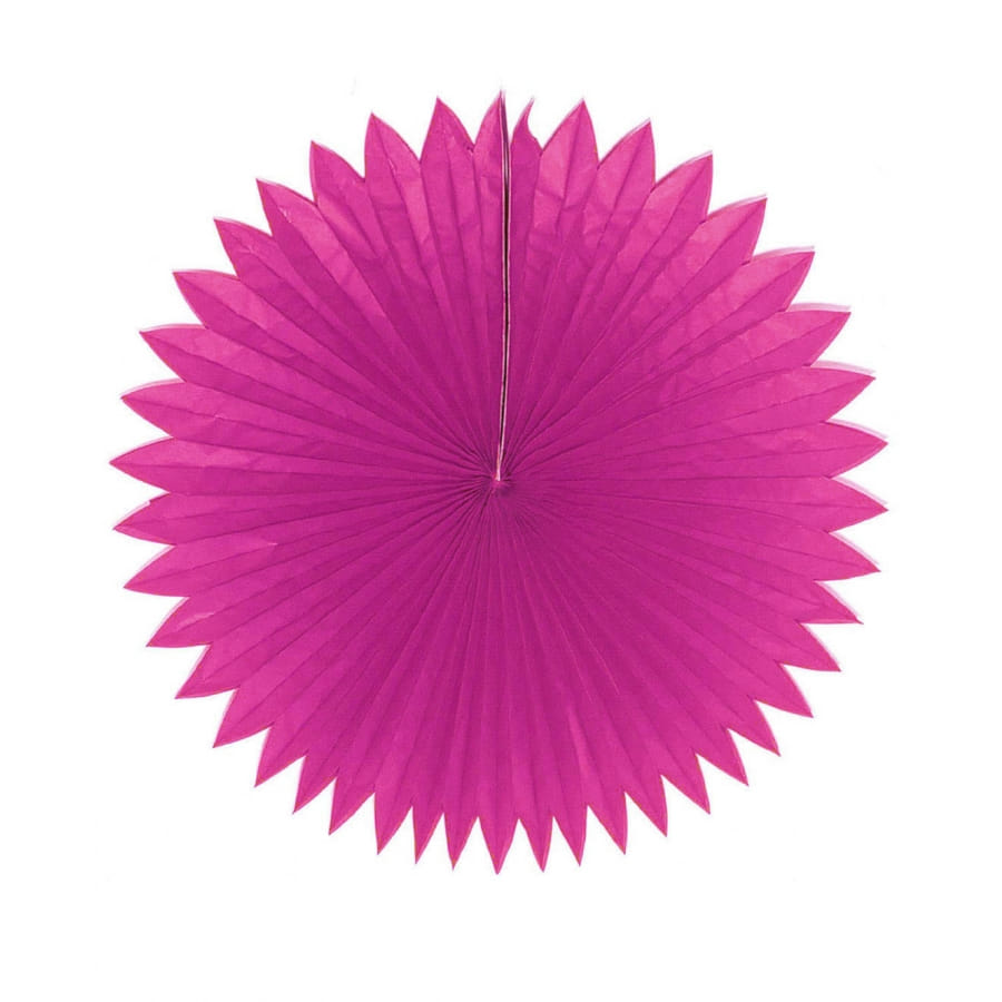 Cette rosace fuchsia en papier de 75cm possède une forme bien symétrique.