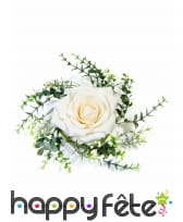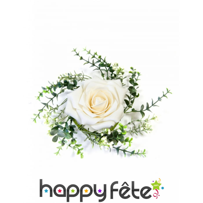 La rose blanche est le point central de cette pièce. Elle est entourée de petites feuilles et de petits bourgeons de fleurs, qui ajoutent une touche de naturel à l'ensemble. Avec son diamètre total de 18cm, cette rose est suffisamment grande pour attirer l'attention, tout en étant assez discrète pour ne pas surcharger votre table.