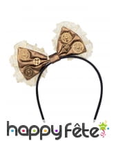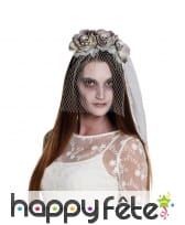 Cette dernière est rehaussée de jolis rubans et voiles transparents noirs.