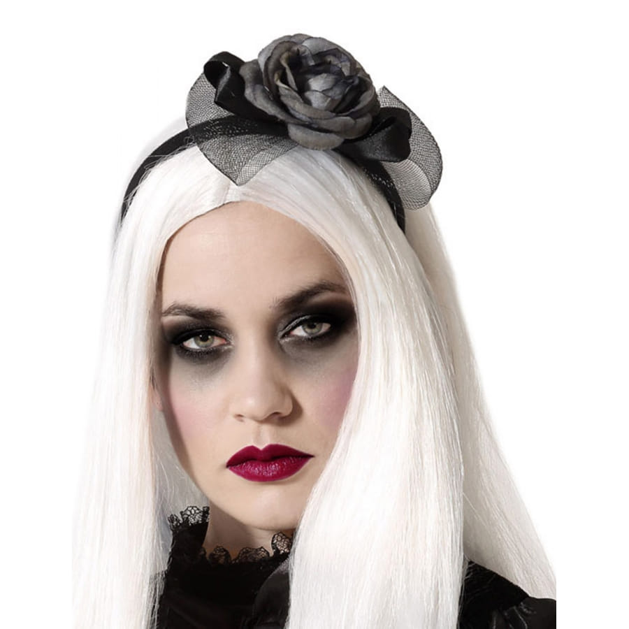 N'oubliez surtout pas les accessoires à Halloween et offrez-vous la rose grise sombre sur serre-tête, adulte.