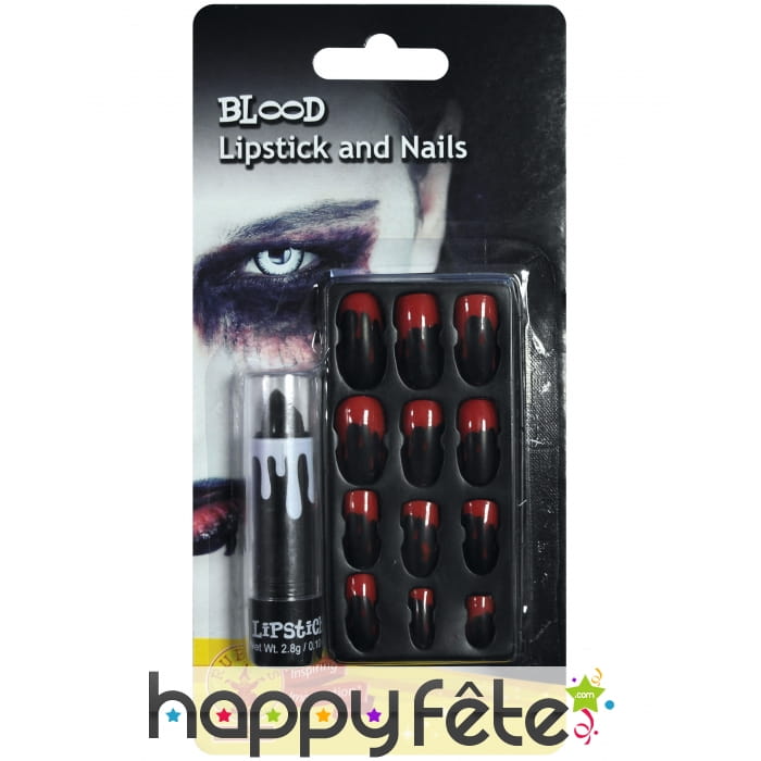 Le rouge à lèvres et ongles en sang sont idéaux pour agrémenter vos costumes de sorcière, vampire ou zombie.