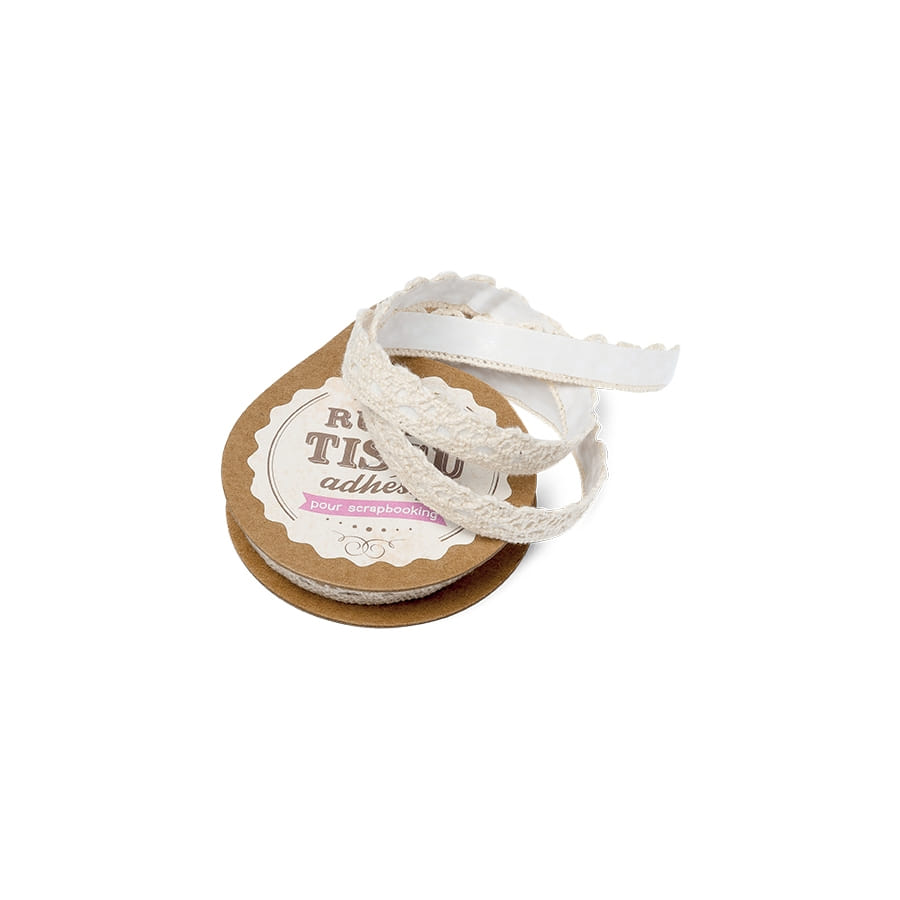 Le ruban en dentelle adhésif de couleur ivoire de 10 mm x 2 m est disponible dans notre boutique.