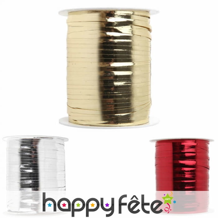 Ce ruban bolduc brillant est disponible en trois couleurs différentes : le rouge, l'argenté ou l'or et bronze.