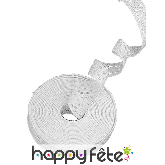 De couleur blanche, il mesure 300 x 1,2 cm et vous servira à décorer des bocaux, à faire de jolis noeuds sur des chaises, ou à créer de superbes ronds de serviettes, par exemple.
