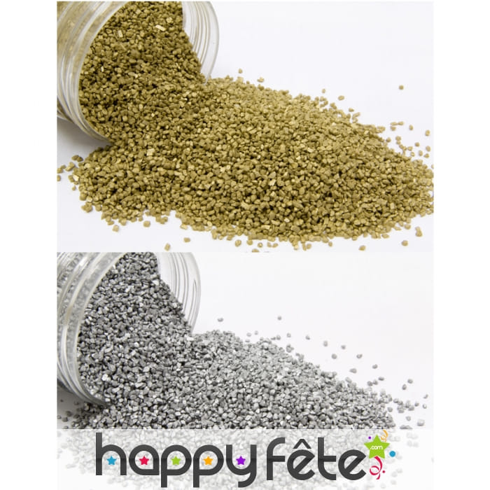 Créez la magie dans votre décor en y ajoutant une note de couleur et d'élégance. Ce lot de sable décoratif métallisé est constitué par 400 grammes de sable de 1 à 2 mm de diamètre chacun. Vous aurez le choix entre du sable argenté et du sable doré. Vous pourrez ainsi utiliser cet élément décoratif à votre guise selon votre créativité.