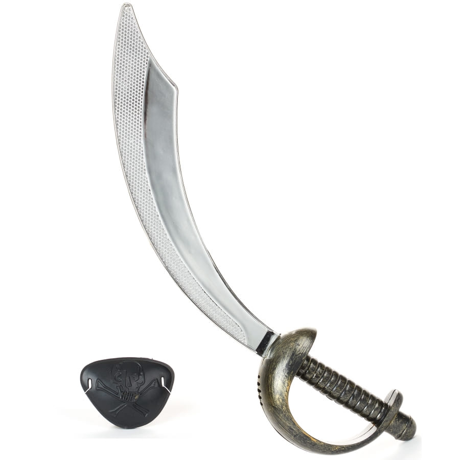 Le sabre de pirate avec cache oeil répond à tous les critères nécessaires de vrais accessoires de pirate pour halloween ! En effet, le sabre recourbé reste assez réaliste avec sa couleur argentée, son cache et sa prise en main. Il mesure environ 55cm de long. Quant au cache-oeil, il est de couleur noire, avec l'emblème des pirates marqué dessus. Il fait dans les 8 x 6 environ.