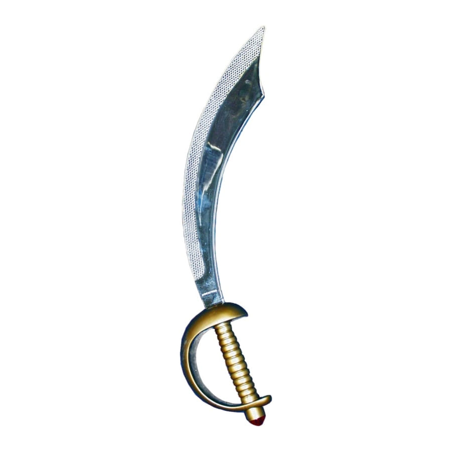 Sabre de pirate pour enfant. Ce sabre est légèrement inclinée, avec une lame argentée et une poignée de couleur bronze. Elle complètera parfaitement un déguisement de pirate ou de corsaire!