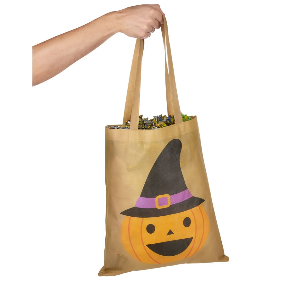Le sac à bonbons beige imprimé citrouille de 43 cm est un accessoire qui vous sera utile pendant la chasse aux bonbons le soir de halloween.