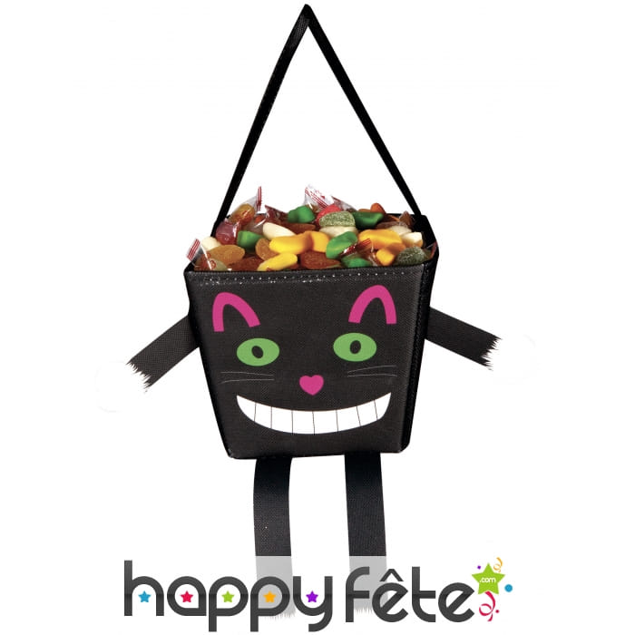 La chasse aux bonbons peut enfin commencer, avec le joli sac bonbons petit chat avec jambes.