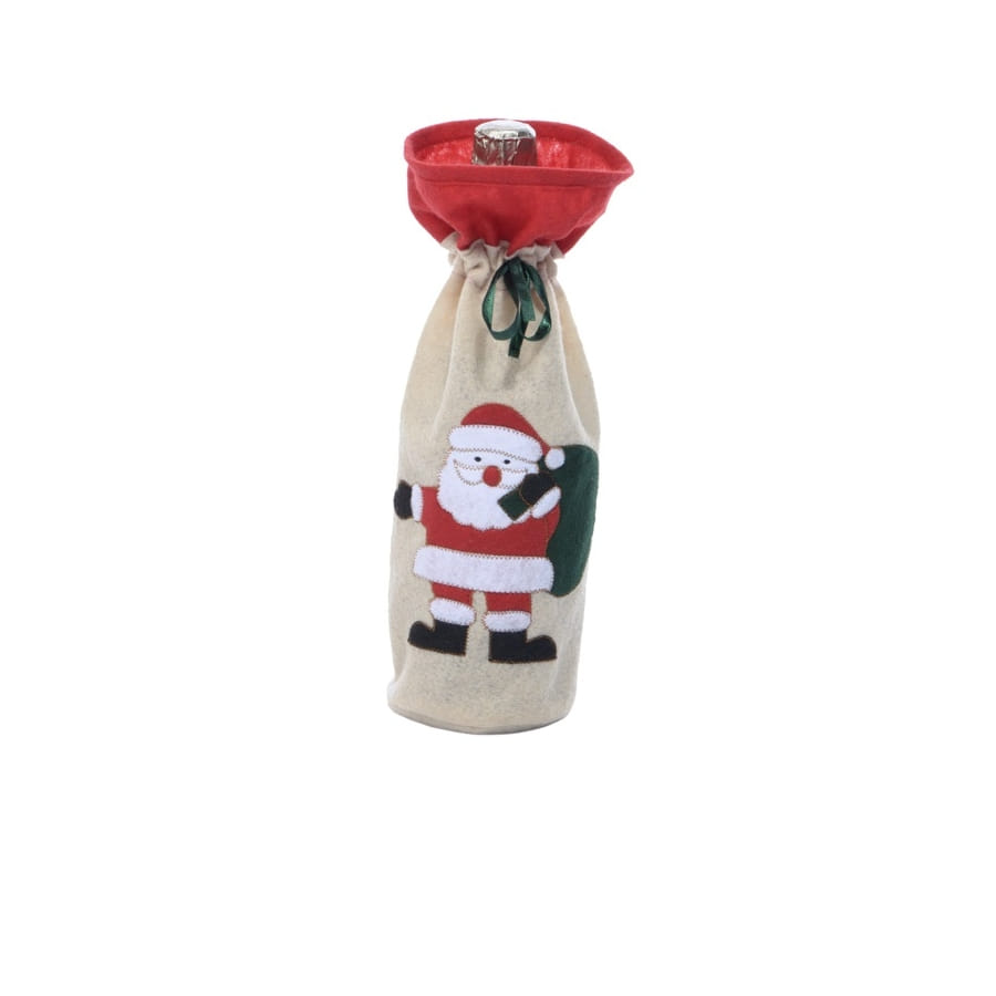 Même les bouteilles peuvent se déguiser en Père Noël !! Optez pour ce magnifique sac à bouteille Père Noël pour égayer vos convives pendant le jour ou le réveillon de Noël. Celui-ci est de couleur beige et rouge, resserré par un cordon vert et met en scène un petit Père Noël avec son sac à jouets. Cet article est en feutrine, mesurant 35 x 16 cm.