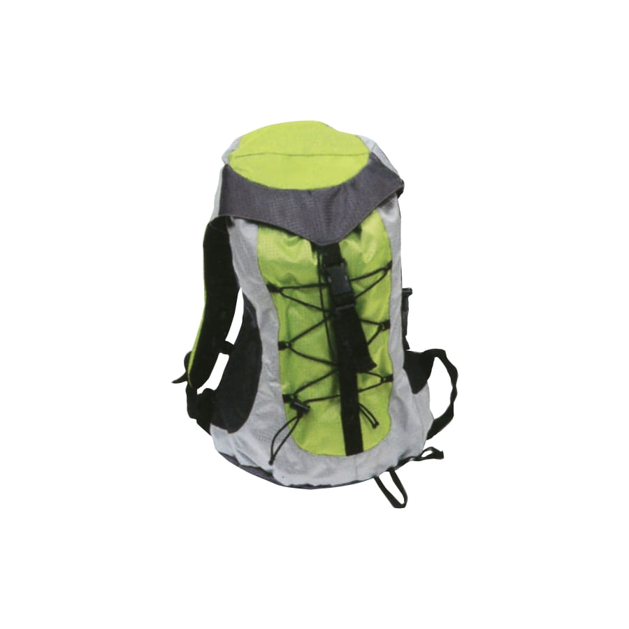 Sac à dos de randonnée de couleur verte, grise et noire, pour adultes. Le sac contient une multitude de poches ainsi qu'une fermeture à lacets à l'avant. Vous pourrez emporter tout le nécessaire requis pour une journée de randonnée garantie sans pépins.