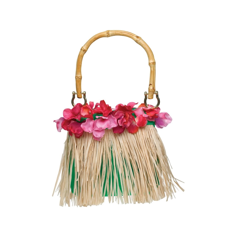 Instaurez une ambiance vacances dans votre look grâce à ce formidable sac à main Hawaï. Il s'agit d'un modèle doté d'une doublure à l'apparence satinée rose et dont la fermeture s'effectue à l'aide d'un bouton à pression centrale. Le sac est agrémenté de jolis raffias suspendus de couleur beige ainsi que d'une succession de fleurs multicolores cousues sur le haut. L'accessoire fait une hauteur d'environ 17 cm et une largeur d'environ 14.5 cm. Il se transporte à l'aide d'une anse en bois.