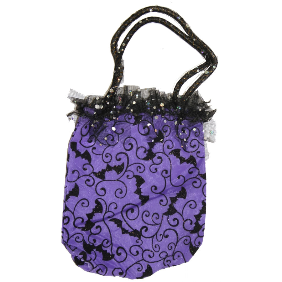 Vous avez déjà votre déguisement de sorcière mais pas encore d'accessoires ? Nous avons ce qu'il vous faut. Nous vous proposons ce sac à main chauve-souris violet pour halloween. Il correspond totalement à l'ambiance de la fête des morts. De couleur violette, on retrouve sur ce sac des imprimés en noir de chauve-souris, avec des effets velours. Le sac présente aussi de la dentelle noire et des perles à sequins au niveau de l'ouverture. Les lanières du sac sont aussi ornées de perles à sequins.