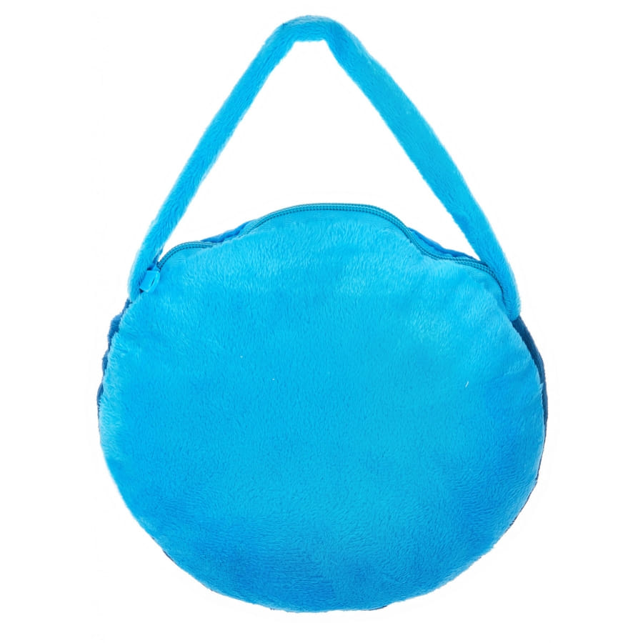 Le sac est bleu et mesure 22 cm de diamètre.