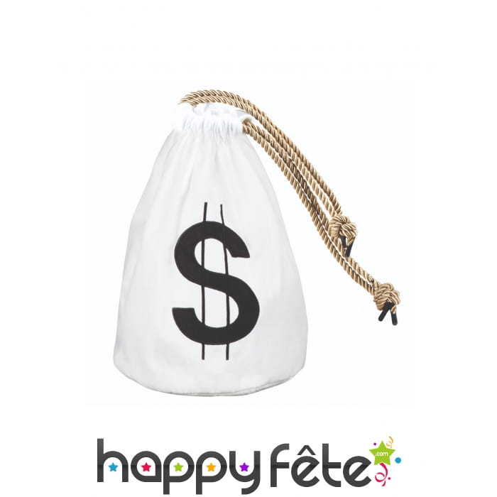 Le sac blanc de voleur avec symbole dollar de 29 x 20 cm est en tissu.