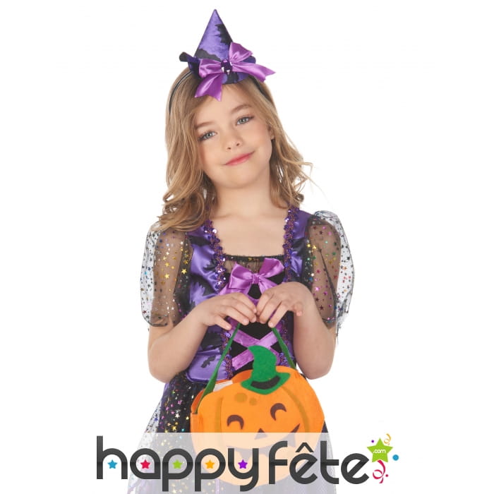 Ce petit accessoire est fabriqué en feutrine et met en avant une jolie citrouille souriante.