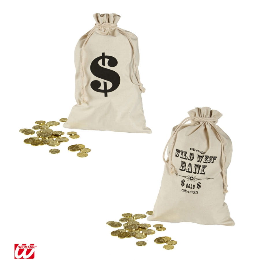 La banque va bientôt transférer l'or vers une autre ville. Etes-vous sur le coup ? Voici un fabuleux sac à pièces d'or. Il est parfait pour jouer une pièce de théâtre de style western. Décorez la salle avec cet accessoire lors d'une soirée country. Ce magnifique sac pour pièces d'or fait 30 cm x 48 cm de dimension. Il est évidemment vendu à vide, sans pièces d'or ! Vendu à l'unité, vous recevez l'un des modèles présentés.