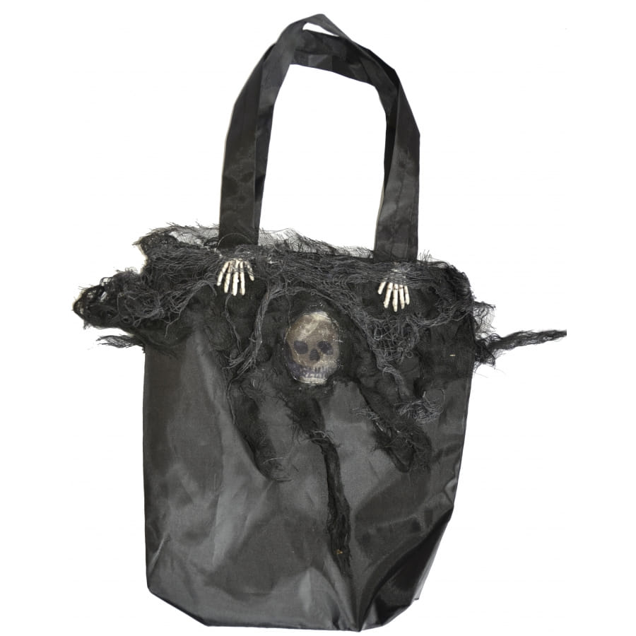 Tout le monde pense au déguisement pour Halloween, mais qui a pensé au sac pour mettre vos affaires ou vos friandises ? Grâce à ce sac noir de 33 x 25 cm de dimension, vous resterez toujours dans le thème de l'épouvante. Il est magnifiquement décoré d'une tête de mort et d'autres motifs qui font peur. Petits et grands pourront tous adopter ce modèle.