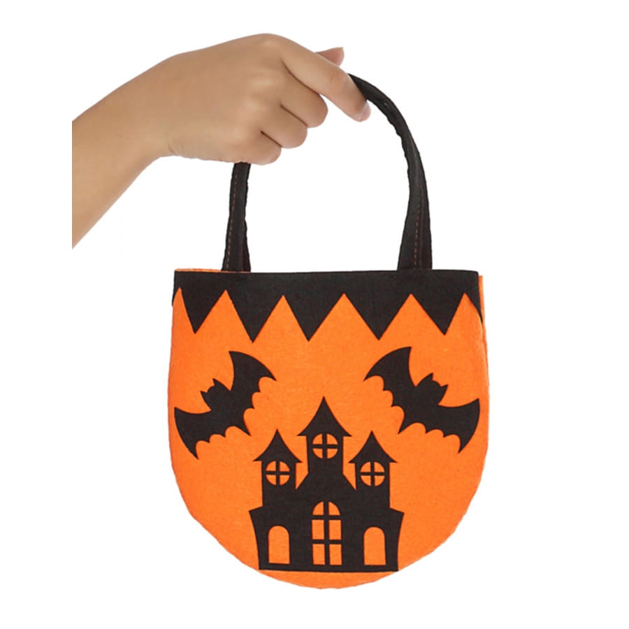 Vous pourrez mettre toutes les friandises à distribuer aux petits monstres dans ce sac maison hantée en feutrine de couleur orange.