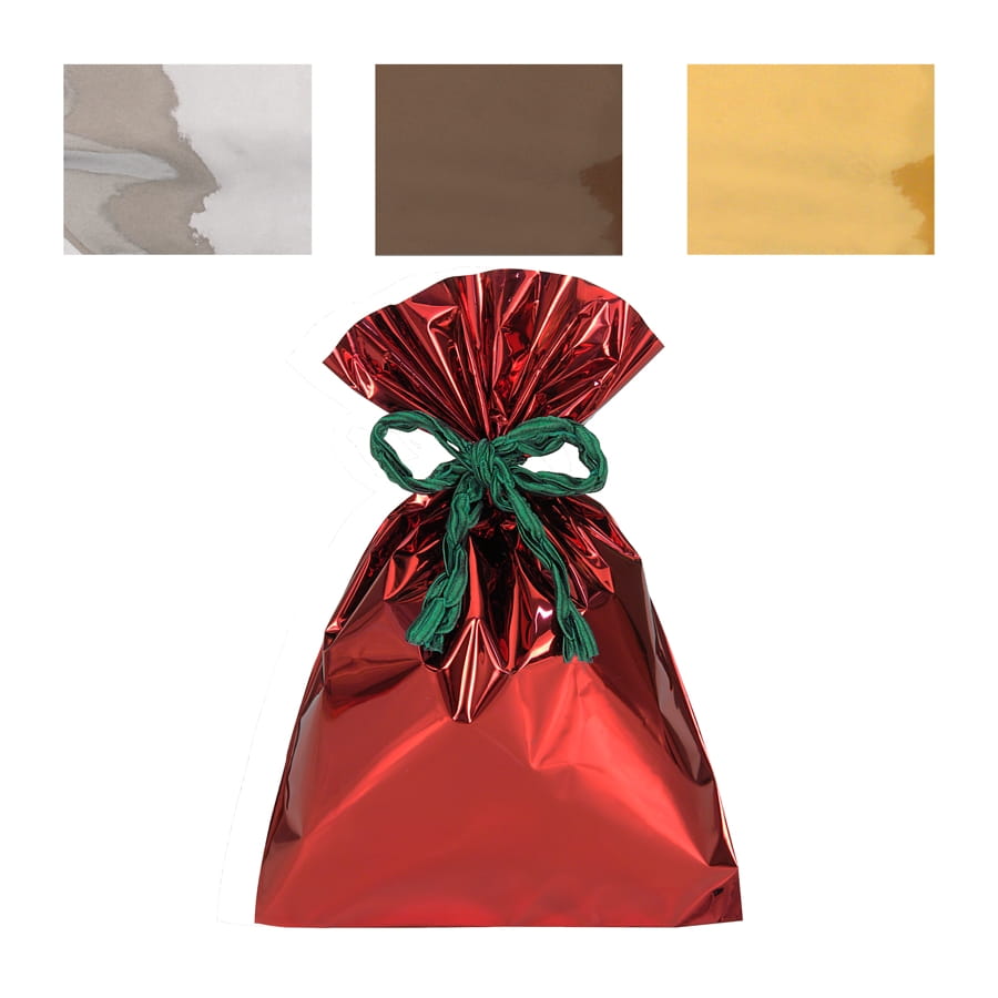 Sac en matière métallisé mesurant 35 sur 50 centimètres. Il vous sera possible de choisir entre le modèle argenté, doré, chocolat ou rouge lors de votre commande. Il peut être utilisé comme accessoire de décoration ou pour offrir des cadeaux lors d'une fête.