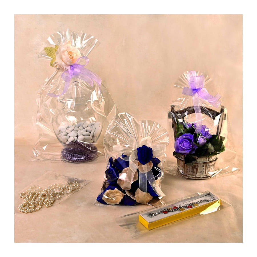 Ce sac transparent de 20 cm x 35 cm est conçu pour emballer vos cadeaux les plus précieux pour vos proches, ou encore de tendres confiseries tels chocolat ou bonbons. Il est en polypro, de 35 cm de long et 20 cm de large. Que ce soit pour Noël, pour un anniversaire ou pour le Nouvel an..., ce sac transparent sera disponible pour vous !