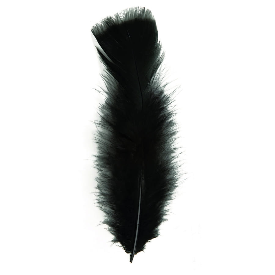 Plumes à pied plat de couleur noir, vendues en sachet de 50. Chacune des plumes mesure 10 centimètres de longueur. Ajoutez un peu de contraste au reste de votre décoration de carnaval ou d'anniversaire avec ces plumes de couleur sombre.