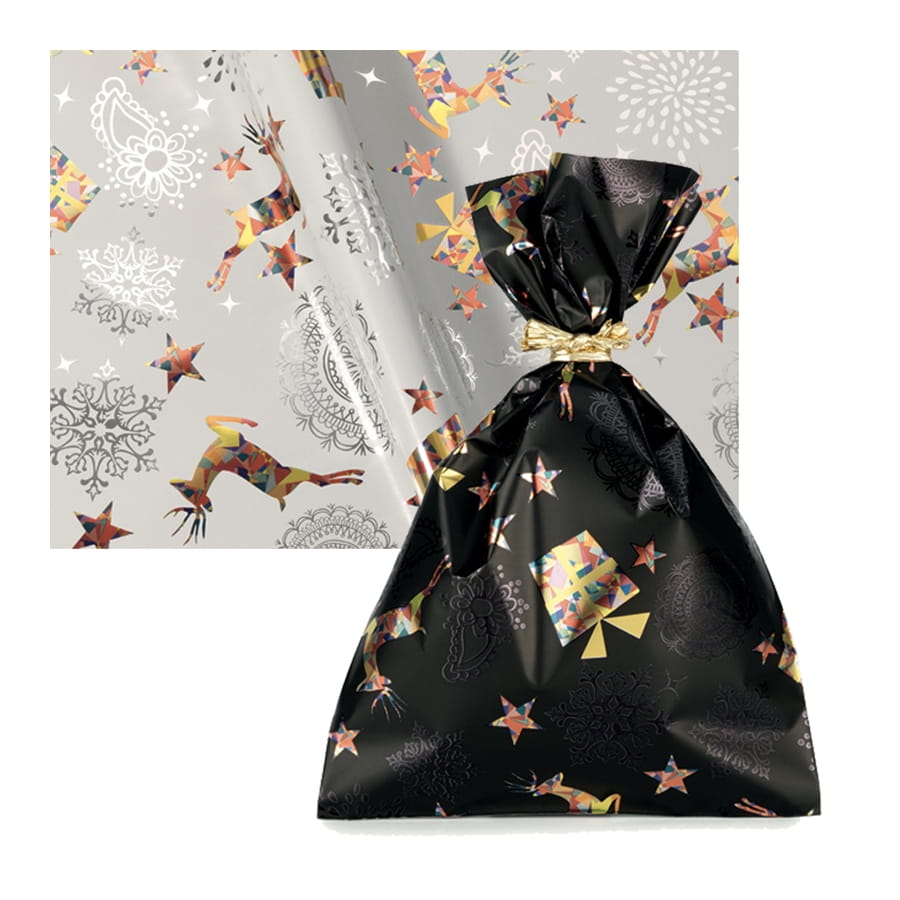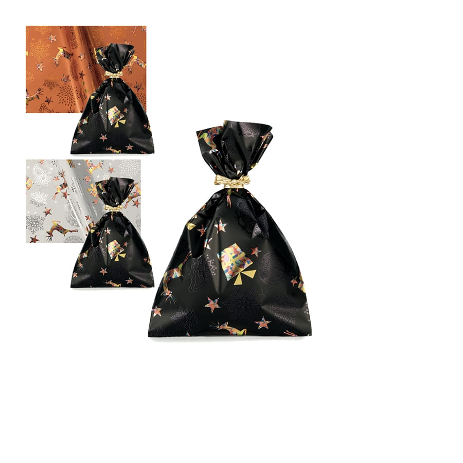 Au lieu d'opter pour le traditionnel paquet cadeau entouré d'un noeud, choisissez une technique beaucoup plus simple. Pour habiller vos cadeaux de Noël, le sac cadeau avec motifs festifs de Noël est disponible en plusieurs coloris au choix à savoir le blanc, le noir, le marron et l'argent. Il est parsemé d'adorables petits motifs. Côté dimensions, il existe trois possibilités : 16 x 25 cm, 25 x 40 cm ou 35 x 50 cm.