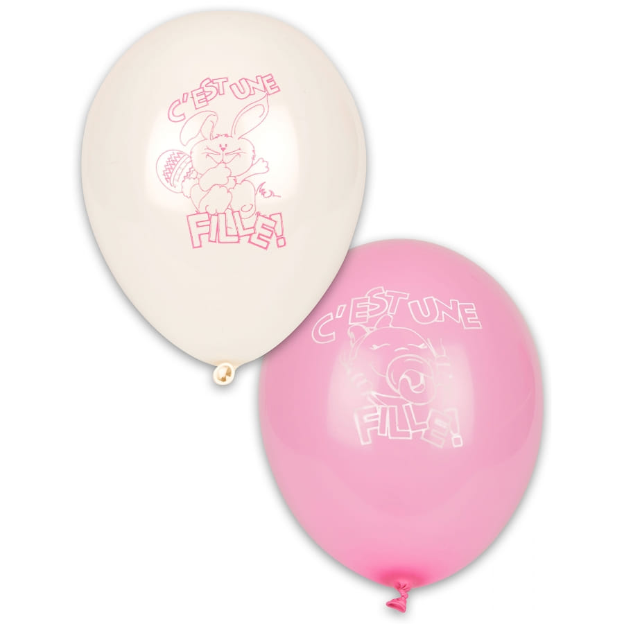 Félicitez les heureux parents en leur offrant des ballons. Ce sachet de 10 ballons c'est une fille est dédié à la naissance d'une merveilleuse petite princesse. Il contient 5 ballons blancs et 5 ballons roses sur chacun desquels vous retrouverez l'inscription "c'est une fille". Il s'agit de modèles en caoutchouc naturel entièrement biodégradables.