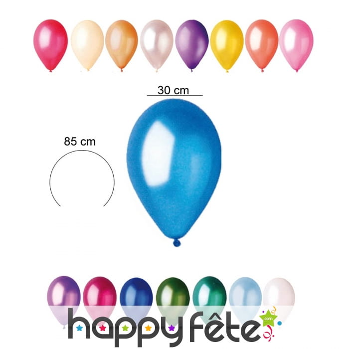 Pour une belle décoration rien de mieux que de les décorer avec ces ballons de couleur nacrée. Vous pourrez les gonflés à l'air ou à l'hélium. Ces ballons sont 100% naturel et en latex biodégradables. Ces ballons font 30 centimètres de diamètre et de 85 centimètres de circonférence.