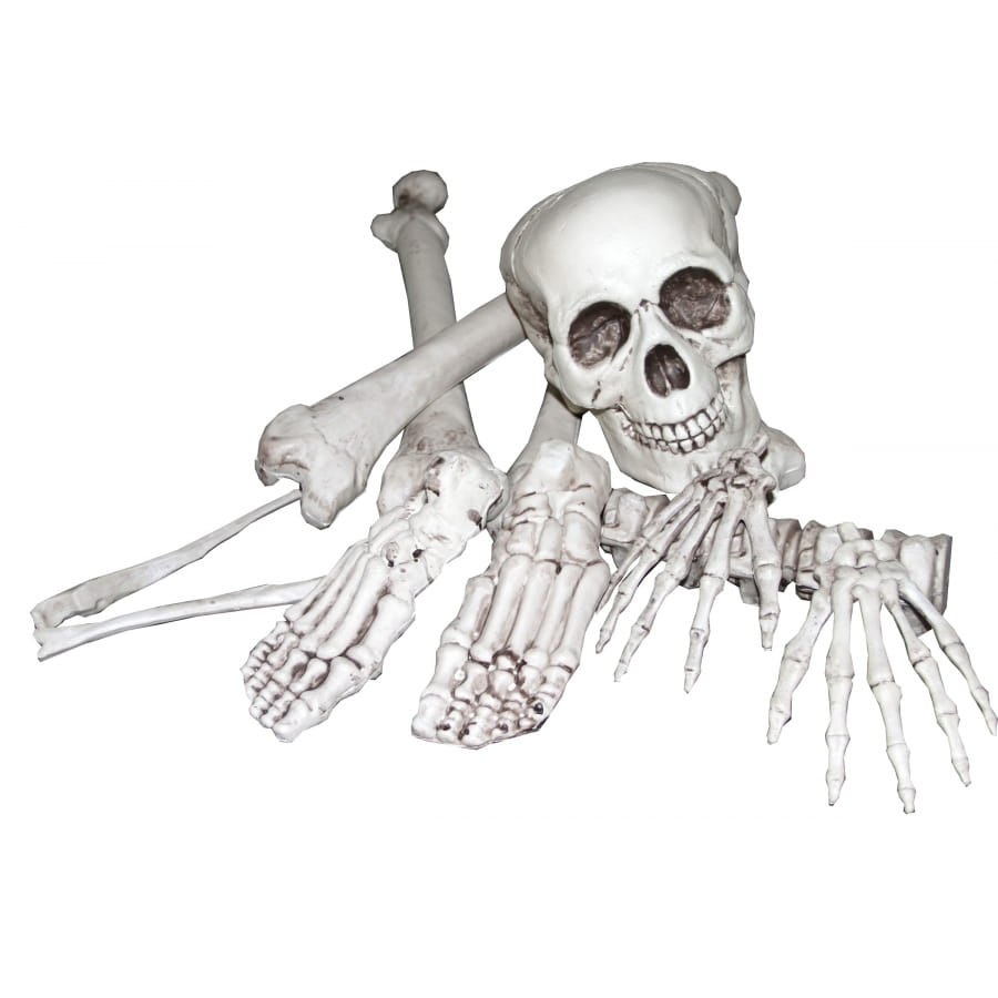 Ce sachet de 10 ossements décoratifs se compose de 10 éléments de squelette en plastique. Ils sont séparés et non emboitables, ce qui les rend assez légers. Ce lot comprend deux mains de 19 cm, deux pieds de 19 cm, un crane de H15 et L17 cm et plusieurs ossements. Vous pouvez les accrocher ou les éparpiller un peu partout à l'occasion d'halloween. Vous ne manquerez pas de filer une bonne frousse à vos invités !
