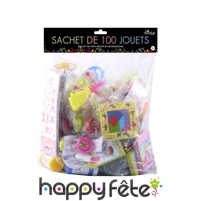 Ce sachet de 100 jouets modèle moyen qui est vendu sur le site Happyfete fera un excellent lot pour les petits jeux ludiques ainsi que les diverses animations.