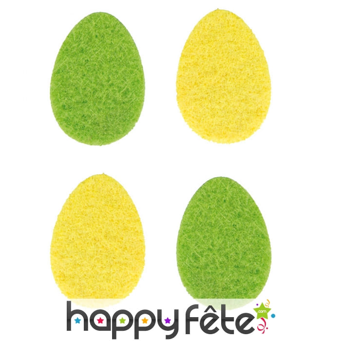 Cette année rendez plus originale encore la déco de la fête de Pâques grâce à ce sachet de 12 oeufs vert et jaune en feutrine, 4 cm.