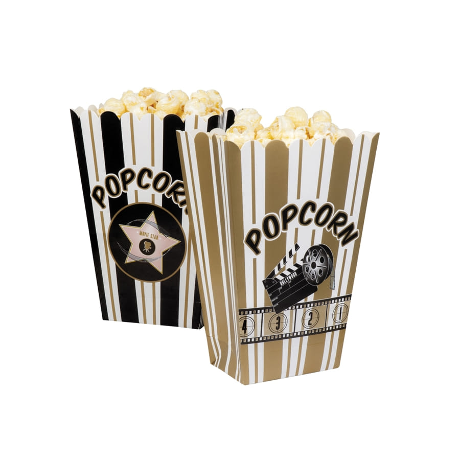 Organisez une soirée cinéma entre amis et faites bien les choses dans les règles de l'art pour que tout le monde s'amuse pendant la soirée. Pour commencer, choisissez les bons films que tous vos amis pourront aimer, avec de multiples choix. Puis faites cuir du popcorn, ou achetez-en. Et pour finir, mettez les popcorns dans ces cornets à popcorn en carton pour que vos amis se sentent comme au cinéma, sans l'obligation de garder le silence. Ces cornets sont proposés en 2 styles et 2 couleurs assorties : noir et blanc ou or et blanc. Lors de la commande, vous n'aurez ni le choix de la couleur ni du modèle.