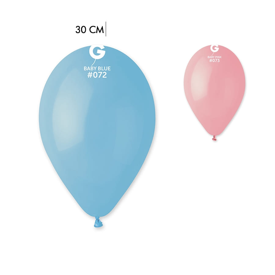 Ces ballons gonflables à l'air ou à l'hélium sont disponibles en couleurs bleu uni ou rose uni, et sont fournis par sachet de 100, de 50, ou par douzaine.