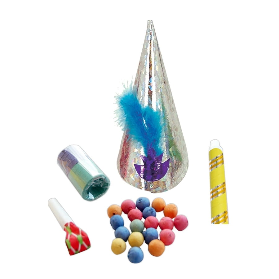 Lâchez-vous, fêtez avec ce sachet de cotillons composé d'une sarbacane, d'un sans-gêne, de 20 boules dancing et d'un rouleau de serpentins. Le kit vient accompagné d'un chapeau de fête et d'un jouet musical (sans gêne). Le tout est emballé dans un sachet transparent soudé. Ce kit est parfait pour un carnaval ou un anniversaire.