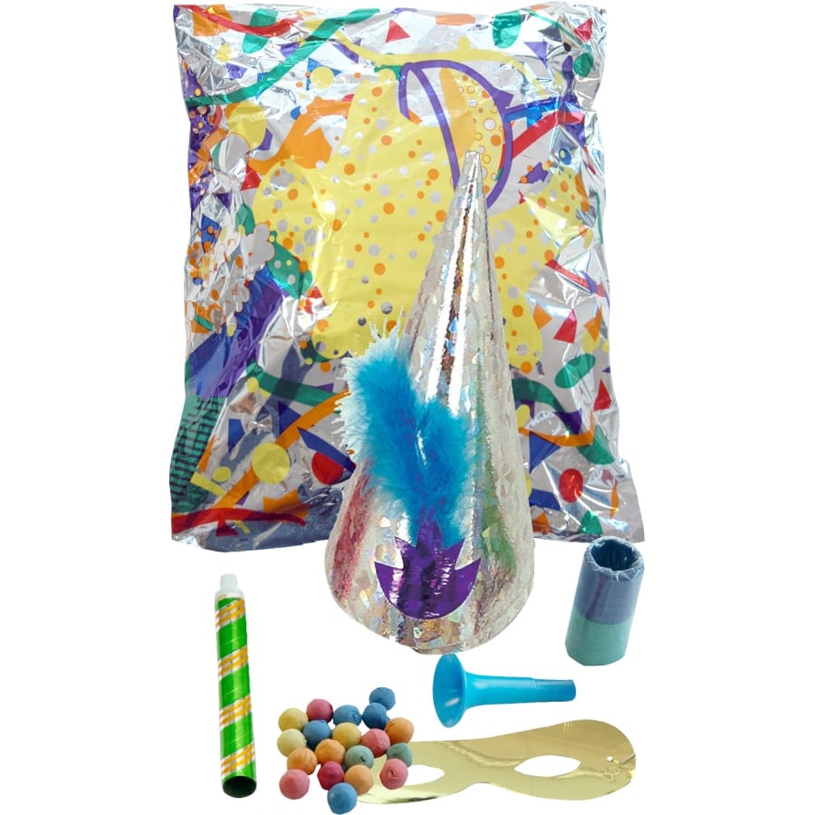 Mais quel est donc ce joli sachet opaque aux couleurs métallisées avec un décor de montre? Un sachet au décor aussi joyeux ne peut contenir que des accessoires de cotillons, bien évidemment. Et cette fois-ci, c'est à vous Messieurs qu'est adressé ce sachet contenant 6 articles, dont 1 chapeau petit modèle, 1 sarbacane, 20 boules dancing, 1 rouleau de 10 serpentins, 1 loup carton métallisé et 1 trompette à musique. Lors de la commande, vous n'aurez pas le choix des couleurs.