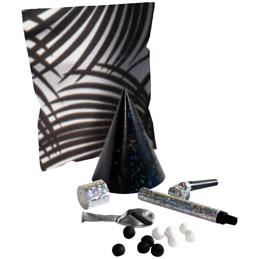 Rien que pour vous ce kit argenté et noir individuel composé d'un coussin, d'un ballon, d'un chapeau pointu, d'une sarbacane, d'un serpentin, d'un sans-gêne et de cotillons. Ceci est idéal pour un carnaval, un anniversaire, le Nouvel An chinois, la Noël ou le Nouvel An.
