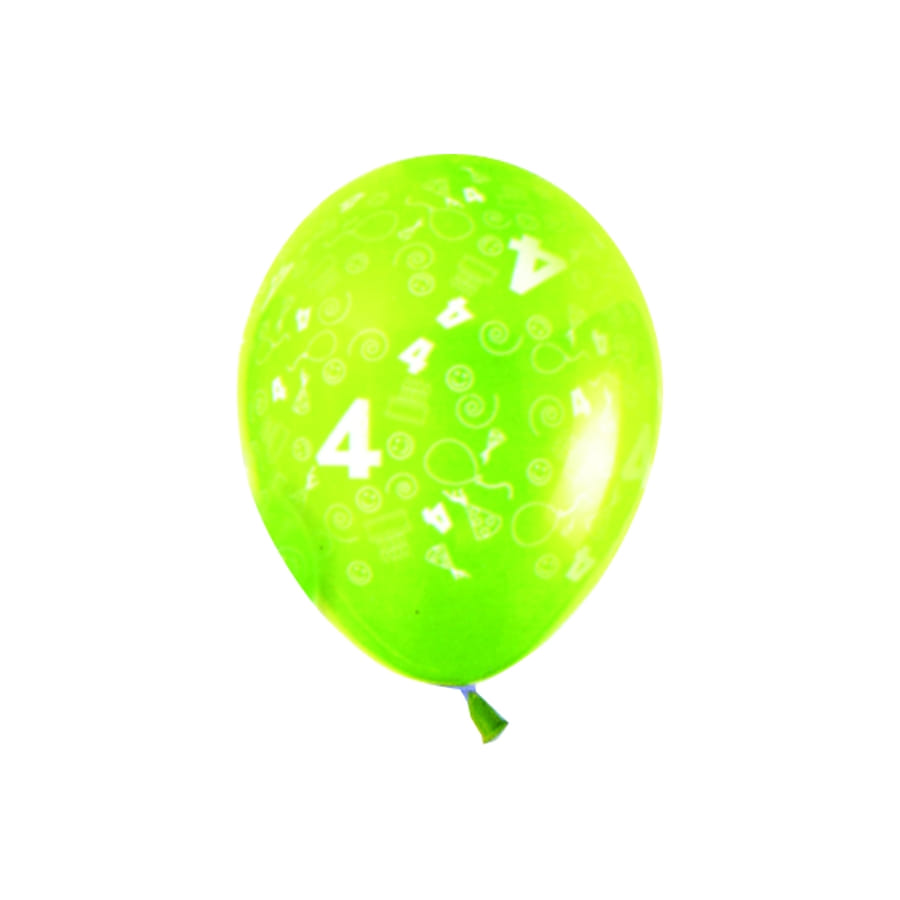 Sachet de 10 ballons verts imprimés du chiffre 4 en blanc. Ces ballons sont 100% naturels et biodégradables. Ils peuvent être gonflés à l'air ou à l'hélium. Ils sont idéaux pour une fête d'anniversaire ou un anniversaire de mariage.