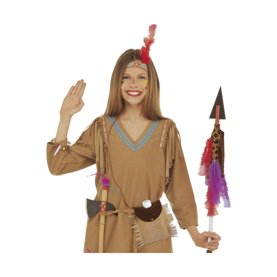 Il se peut que vous ayez soif lors de la longue marche du carnaval auquel vous allez assister. Pourtant, si vous emmenez une bouteille d'eau, cela pourrait ne pas aller avec votre déguisement d'Indien ou d'Indienne. C'est pour cela que nous avons conçu cette petite sacoche indienne avec un effet daim de couleur marron foncé et marron clair, avec une petite gourde à l'intérieur. Eh oui, c'est notre travail de penser à tout !