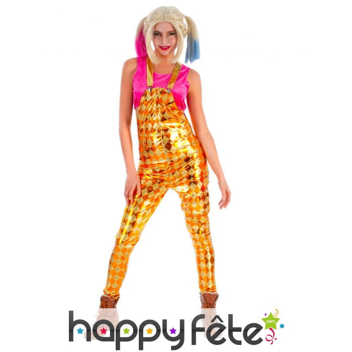 Les amatrices de cinéma seront fanes de la salopette à losanges dorés pour femme adulte.